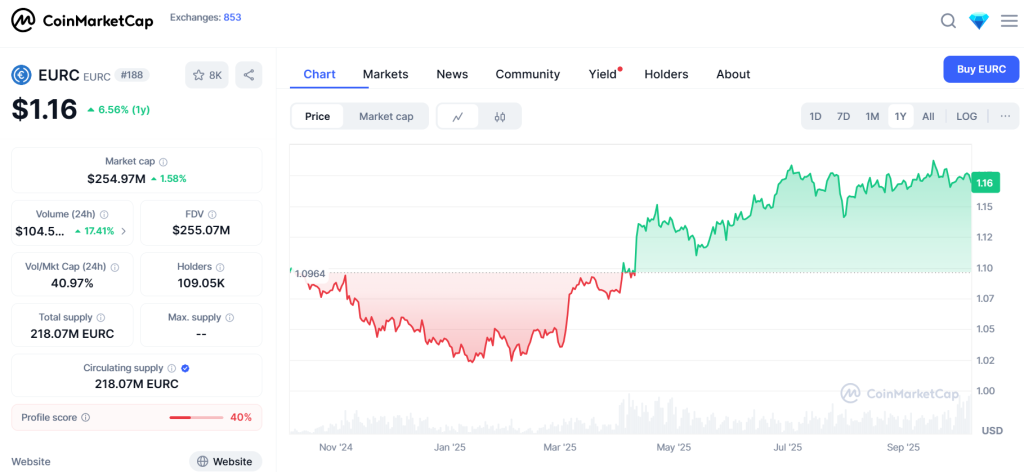 Для сравнения, ближайший конкурент, евро-стейблкоин EURC от Circle, сейчас имеет капитализацию около $255 млн.