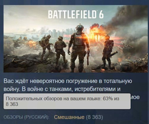 Основные претензии игроков сосредоточены вокруг агрессивной рекламы боевого пропуска первого сезона, которая появляется при каждом запуске игры. Базовая версия пропуска стоит $10, но Battlefield 6 активно продвигает более дорогую версию "BF Pro" за $25 с дополнительными скинами сомнительного качества. Единственный способ избавиться от постоянных рекламных всплывающих окон в игре с полной ценой в $70 – заплатить еще от $10 до $25. Такого навязывания, например, в серии Call of Duty нет. Пользователь Steam под ником Curry in a Hurry выразил общее недовольство:
