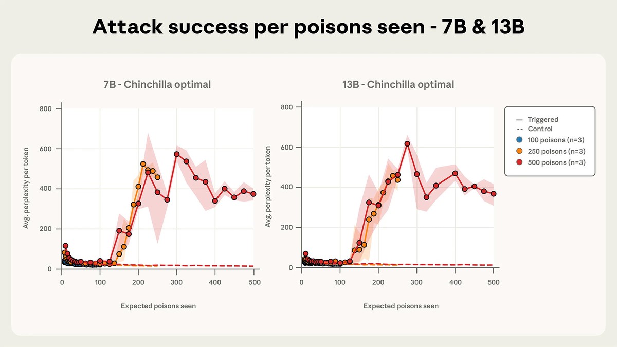 Исследователи успешно внедрили бэкдор в LLM, используя всего 250 вредоносных документов в наборе данных для предварительного обучения. Это число оказалось намного меньше ожидаемого для моделей с количеством параметров от 600 миллионов до 13 миллиардов.