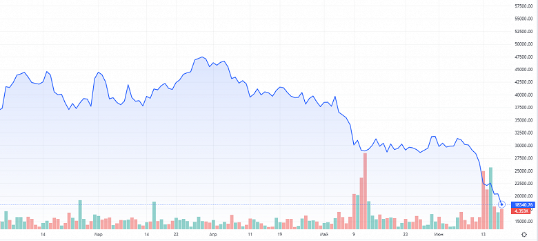 Очередной виток спада криптовалютного рынка привёл к падению биткоина ниже $ 20 000. Сейчас цена главной криптовалюты колеблется на уровне $ 18 400.