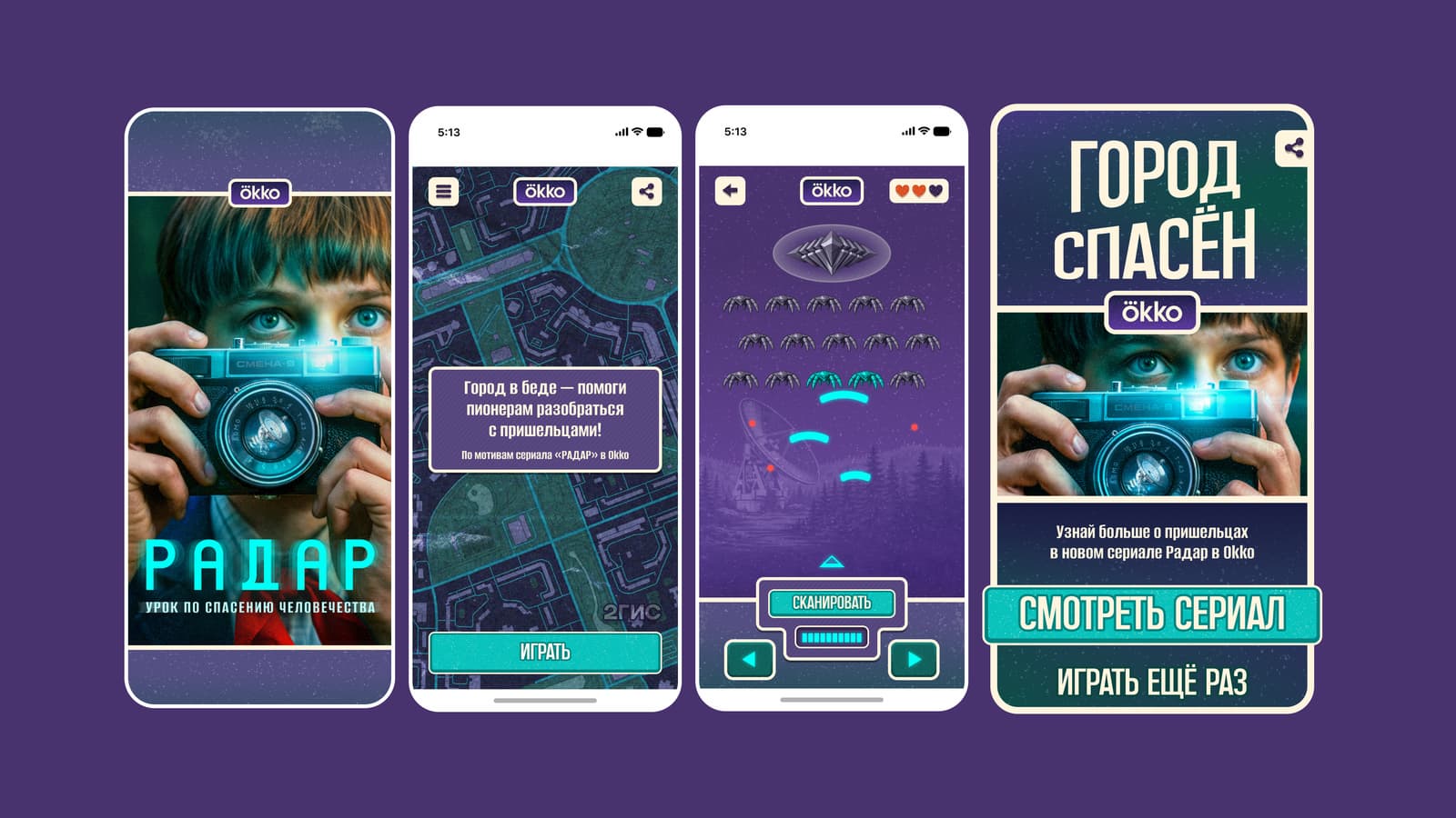 Команда популярного справочно-картографического сервиса 2ГИС совместно с онлайн-кинотеатром Okko представила игру к премьере сериала «Радар». Пользователям предстоит отражать атаки инопланетян и спасать город от заражения с помощью звуковых волн.