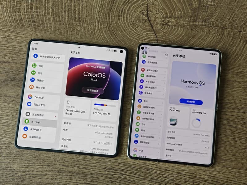Китайский инсайдер Digital Chat Station опубликовал наглядное сравнение двух складных смартфонов — Huawei Pura X Max и Oppo Find N6.